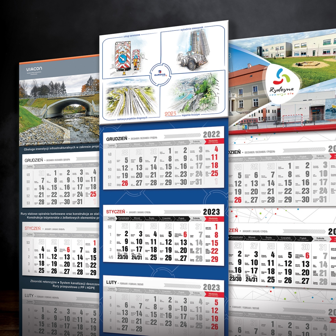 Projektujemy kalendarze indywidualne - w naszej ofercie znajdziecie Państwo kalendarze ścienne B1, trójdzielne, jednodzielne, wieloplanszowe.